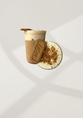 Iced Latte with a biscoff Cold Foam, biscoff crumb & a biscuit to dip.
