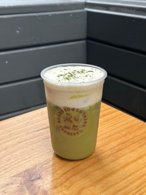Matcha with Vanilla cold foam, orange zest. Contains dairy